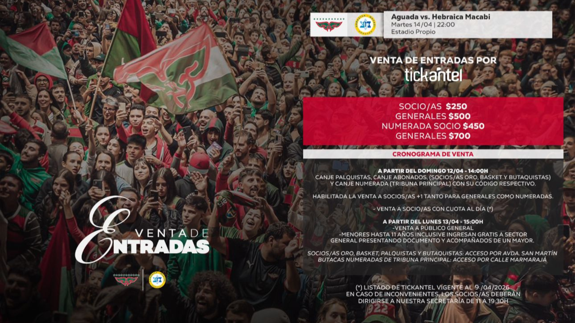 Venta de entradas Vs Hebraica Macabi. #ConEntusiasmoYValía...